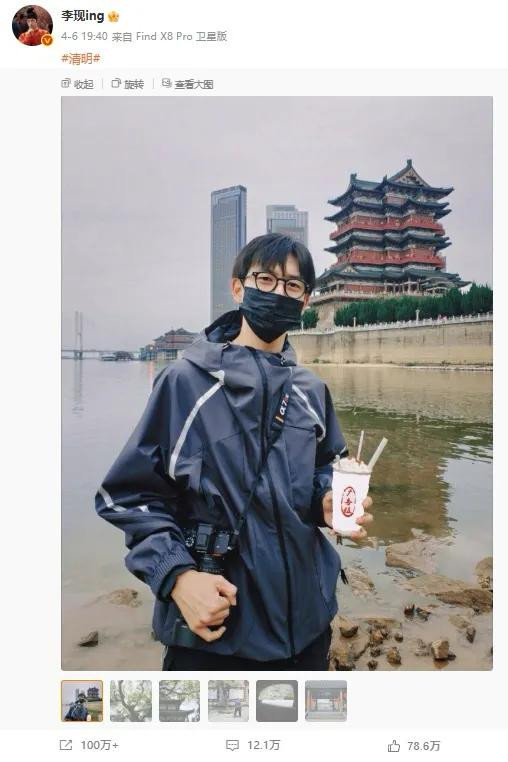 李现拿着奶茶,站在滕王阁前留影。(图/@李现ing)