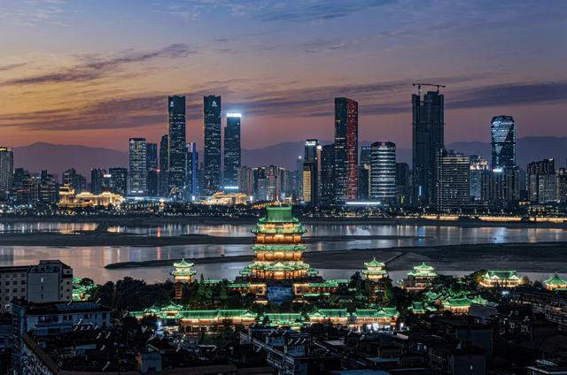 滕王阁与红谷滩现代建筑群隔江相望。(图/图虫创意)