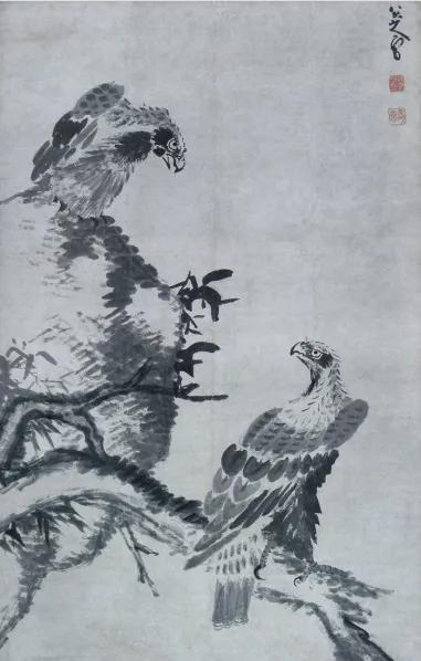 八大山人晚年画鹰的代表作《双鹰图轴》”现藏于南昌八大山人纪念馆。(图/纪念馆官网)
