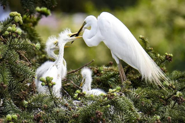 象山森林公园里,鹭鸟在林间筑巢养育后代。(图/视觉中国)